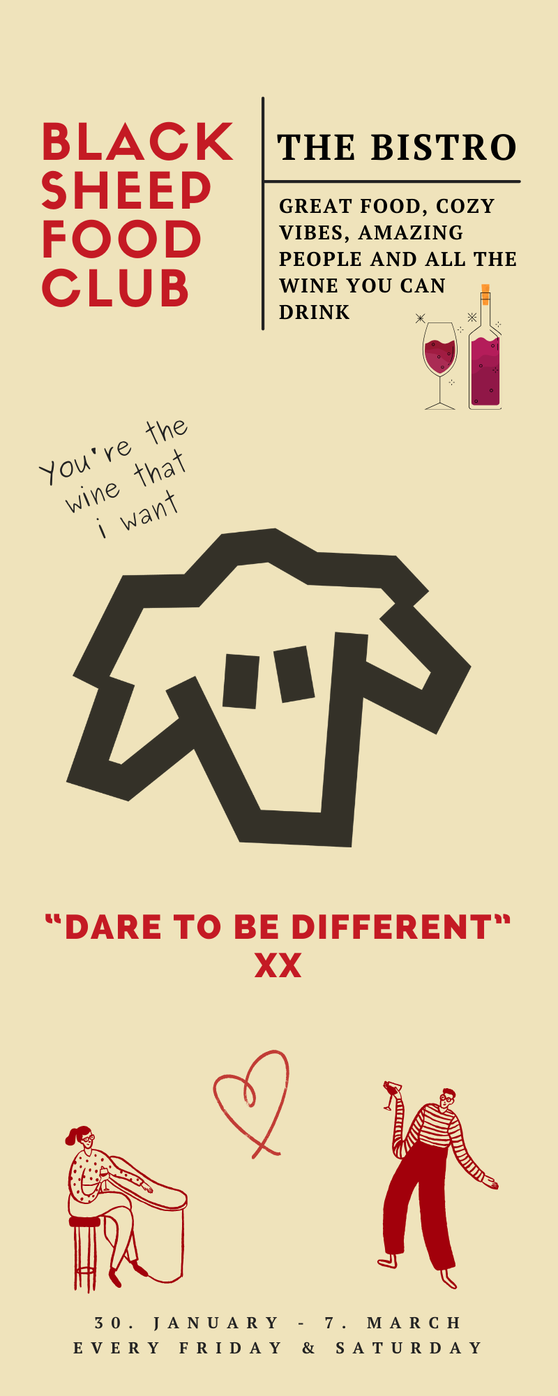 Format: Eksklusiv pop-up — pladserne er begrænsede.Kom og oplev en aften, hvor god mad, lune smil og et glimt i øjet går op i en højere enhed. Sikre jer bord til en uforglemmelig aften med fremragende mad, fri vin og skøn stemning. Vi glæder os til at byde jer velkommen i The Bistro.
